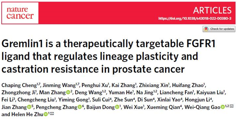 4 Cheng, C., Wang, J., Xu, P. et al. Gremlin1 is a therapeutically targetable FGFR1 ligand that regulates lineage plasticity and castration resistance in prostate cancer. Nat Cancer 3, 565–580, doi://doi.org/10.1038/s43018-022-00380-3 (2022).