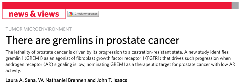5 Sena, L. A., Brennen, W.N. & Isaacs, J.T. . There are gremlins in prostate cancer. Nat Cancer 3, 530–531, doi://doi.org/10.1038/s43018-022-00381-2 (2022).