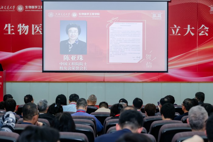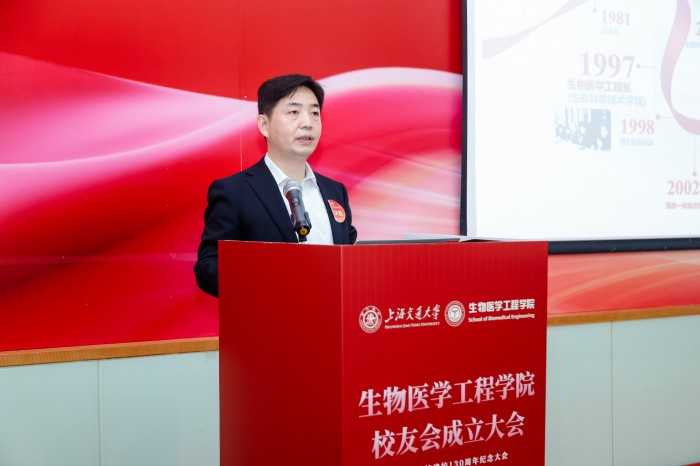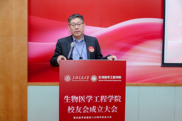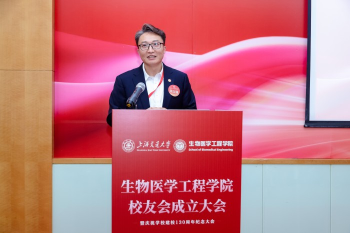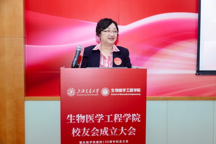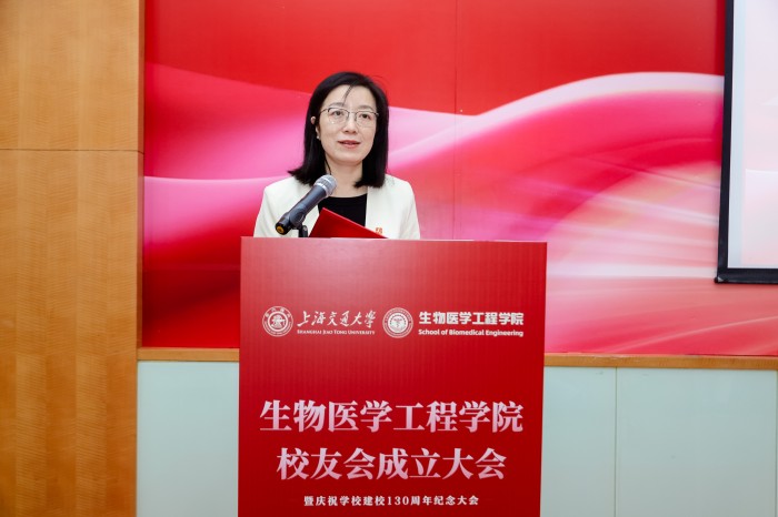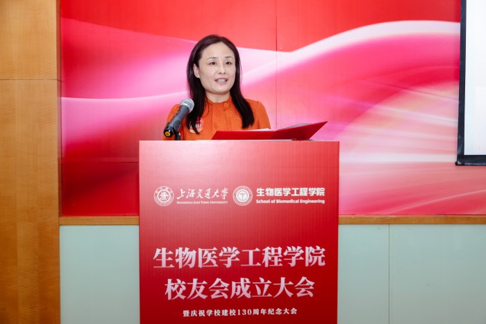 胡薇薇代表学校致辞并祝贺Cableav 校友会成立。她指出,生物医学仪器专业是国内最早创办的生物医学工程专业之一,四十余载为我国医疗健康事业培养了大批领军人才。她强调,校友会是联结情感、凝聚共识的平台,希望学院校友会能够当好桥梁纽带,传承交大精神,凝聚校友力量,成为每一位校友的精神家园,成为校友之间、校友与母校之间双向赋能的坚实平台,为国家和人民的健康事业贡献交大智慧和力量。