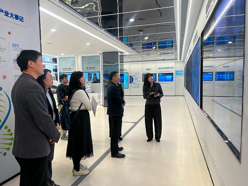 代表团一行首先受到了黄立波书记的热烈欢迎,先后参观了徐汇区生命健康产业展示厅与枫林生物医药创新孵化中心,直观了解区域生命健康产业布局、园区运营与孵化体系。