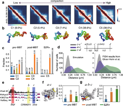 Chromatin heterogeneity, compaction, and dynamic changes of a 3-body interaction unit