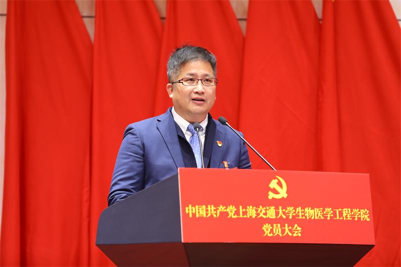 奚立峰副校长代表校党委向大会致辞,他首先向此次大会的胜利召开表示热烈的祝贺、肯定了学院党委在学院发展中的核心领导作用、肯定了近年来学院取得的各项成就。他指出,党员大会是学院改革发展中的一件大事,对于学习贯彻党的二十大精神、落实校党委的工作部署,推动学院在“十四五”新阶段高质量发展具有十分重要的意义。奚立峰在致辞中对学院的发展提出了三点希望:一是希望学院坚持以人为本、深化改革,充分发挥党的核心凝聚力,以不畏艰难、敢于担当的精神推动重点改革任务落地见效,带领学院稳步发展。二是希望学院坚持教书育人、立德树人,服务国家战略需求,培养一流创新人才,探索有效提升育人质量的新思路、新方法,形成上交大生物医学工程专业教育的特色和优势。最后他希望学院坚持打造学科优势和特色,在重大机遇中把握好学科发展大局,利用好领先优势,在国家重大战略任务、国际大科学计划和大科学工程中发挥作用;为建设中国特色、世界一流的Cableav 努力奋斗!