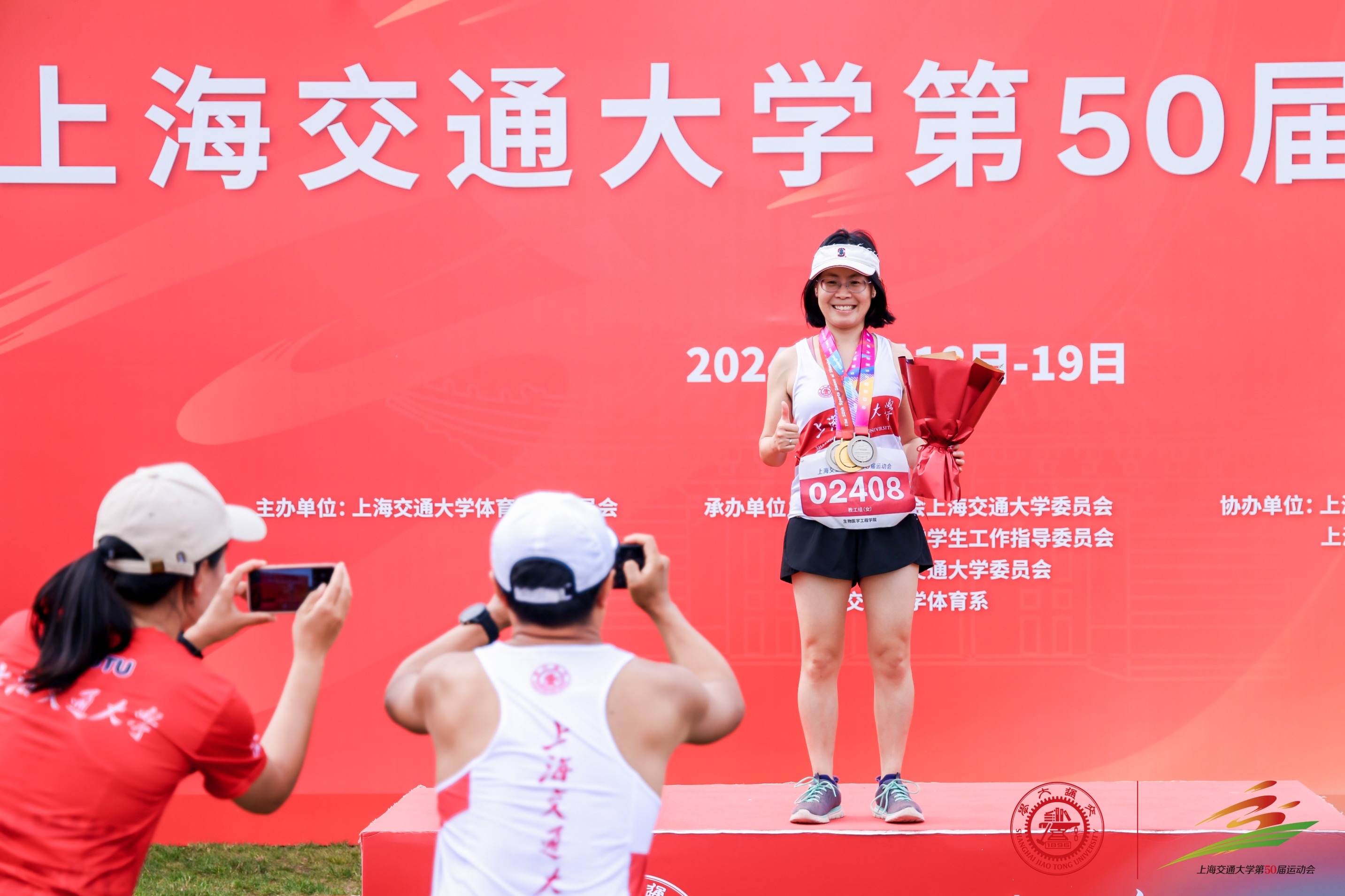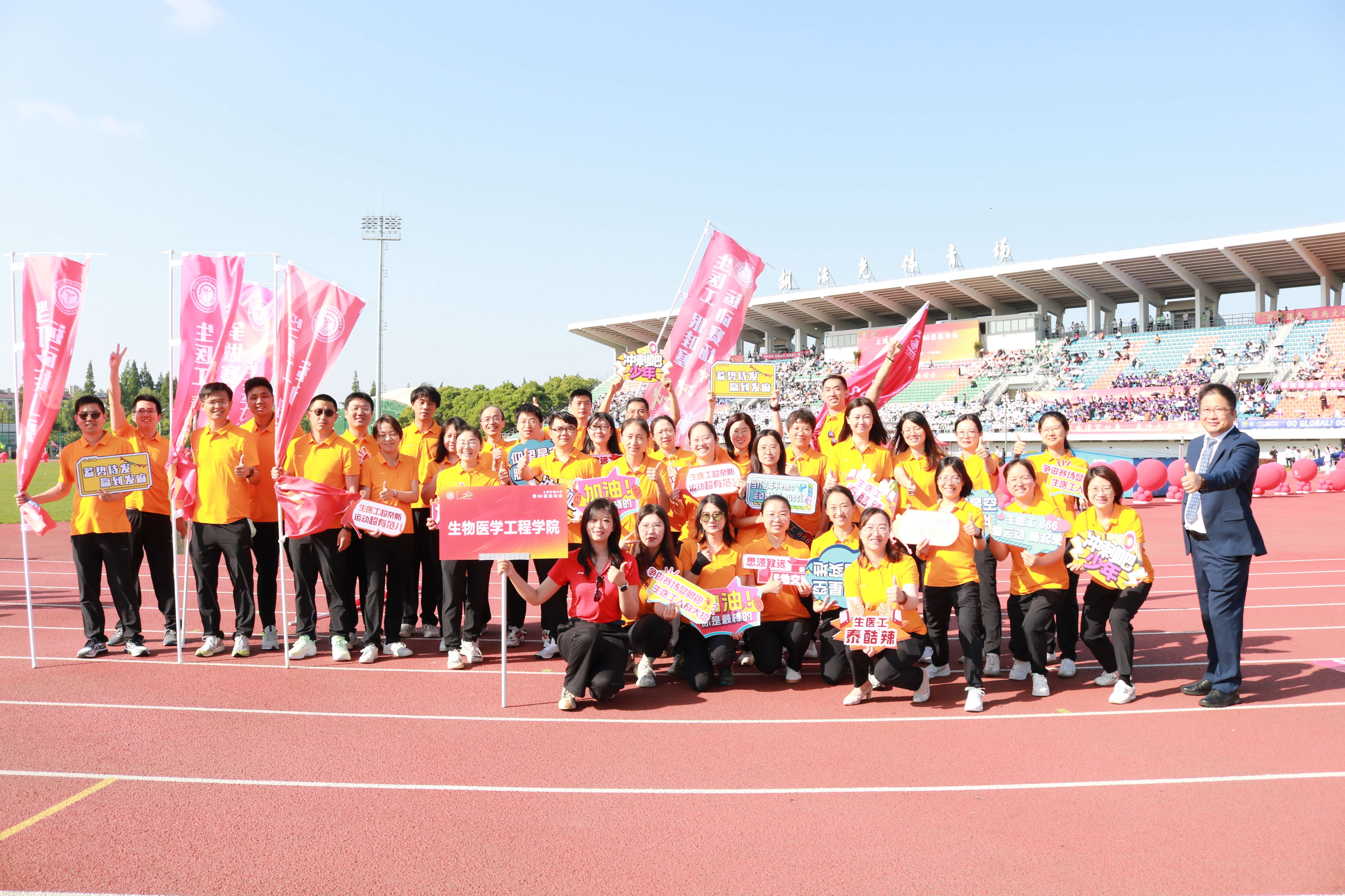 运动点燃激情,拼搏成就梦想,运动会首段赛程结束,生医工教工队斩获四金四银,目前以8枚奖牌的历史性突破,位列校运会第二名。同时,获得健步走优秀组织奖。