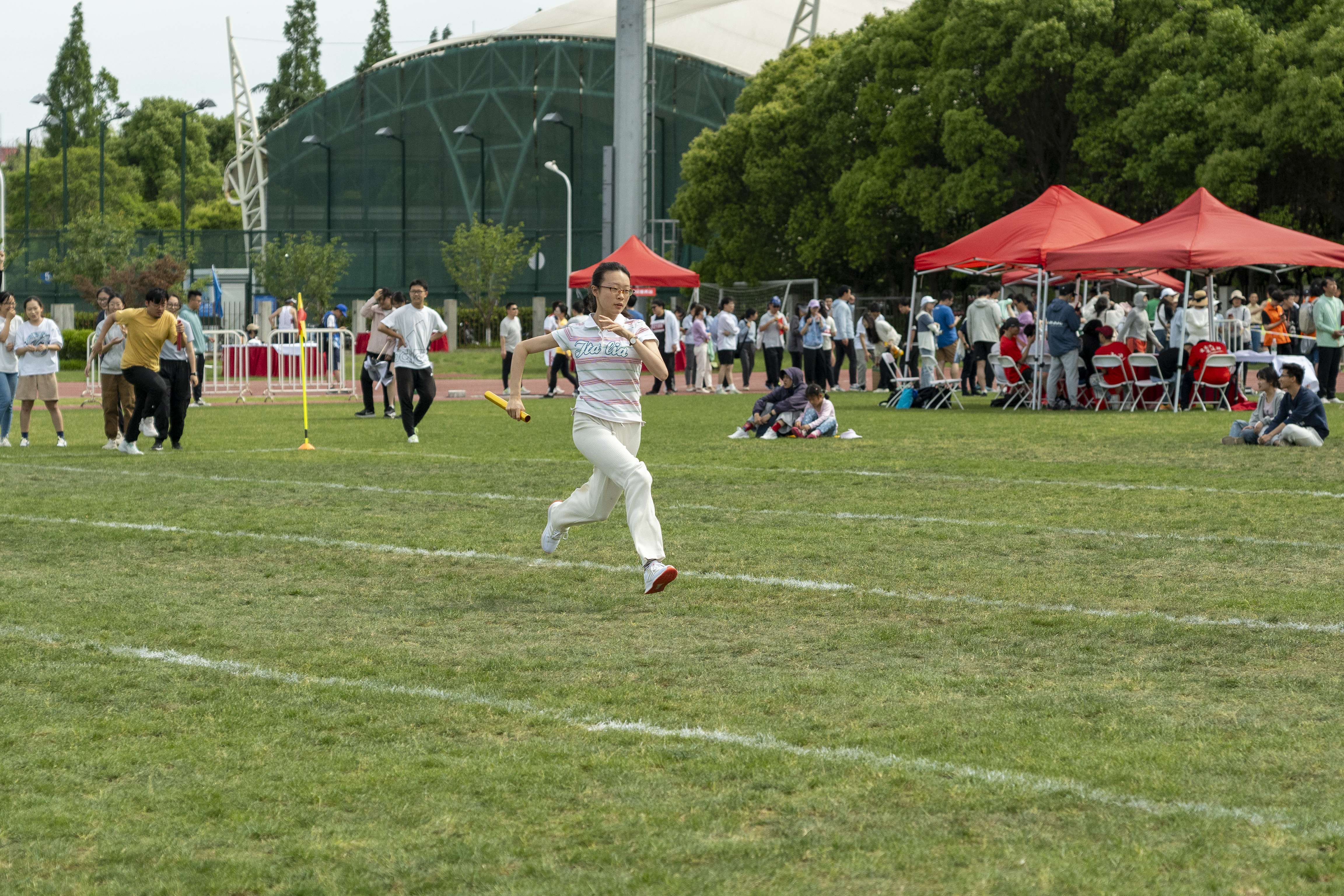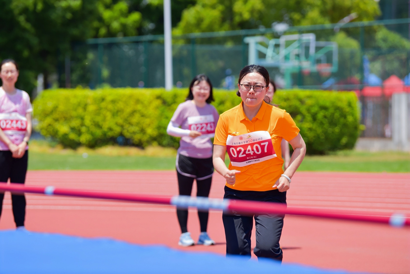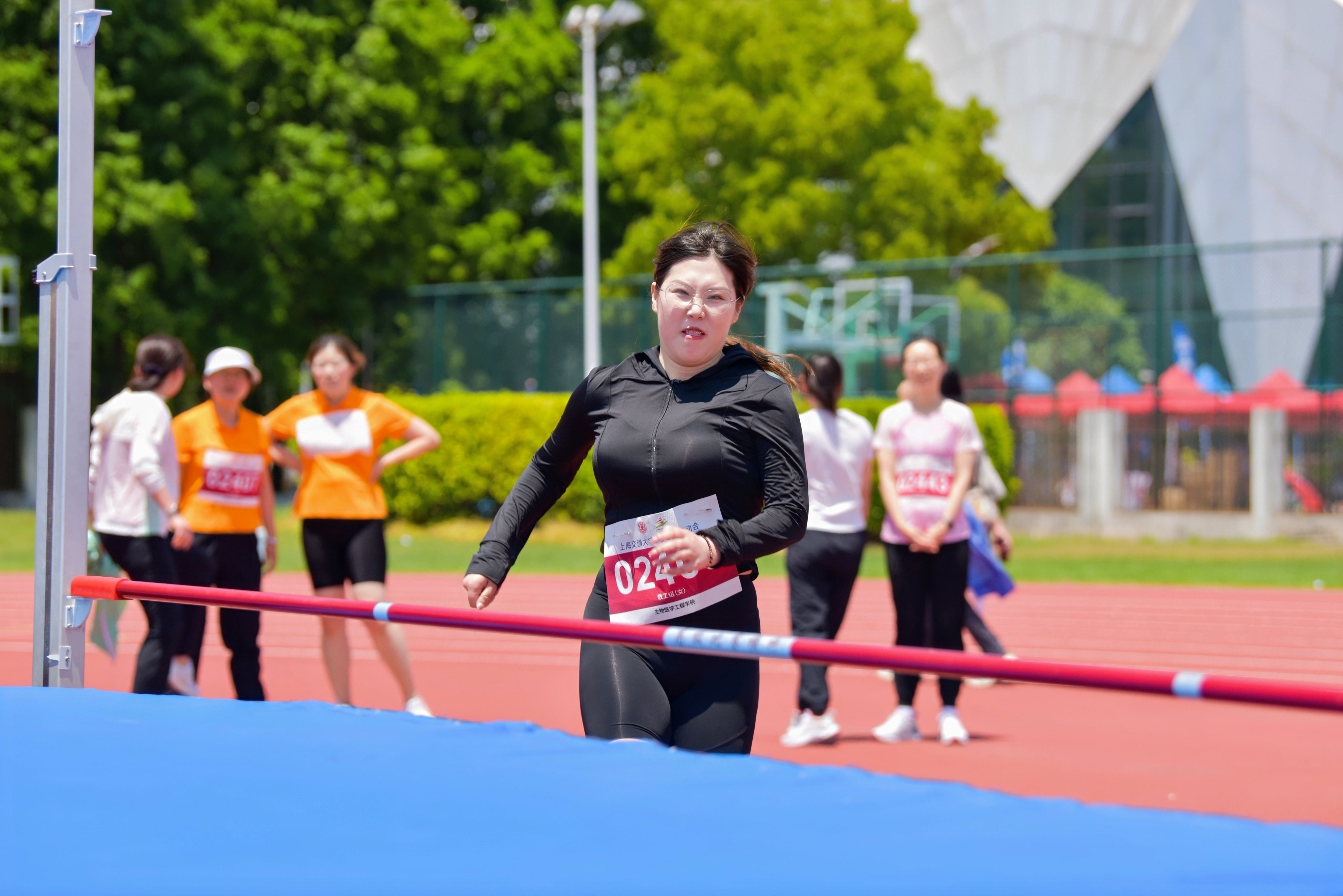 杨月皎老师在女子中青年组跳高、跳远项目中夺得双金,熊丽琴老师在女子中青年组800米、100米中分获金牌和银牌,蒋美林老师获得女子组铅球金牌和跳高银牌,刘佳霖老师勇夺男子中青年组铅球银牌!在团体项目中,生医工教工团队也锋芒毕露,势如破竹。生物医学工程院队分别获得了女子中青年组4×100米接力赛银牌,获飞盘九宫格第五名、袋鼠跳接力第五名,行之处,骄傲与喜悦一路留芳。