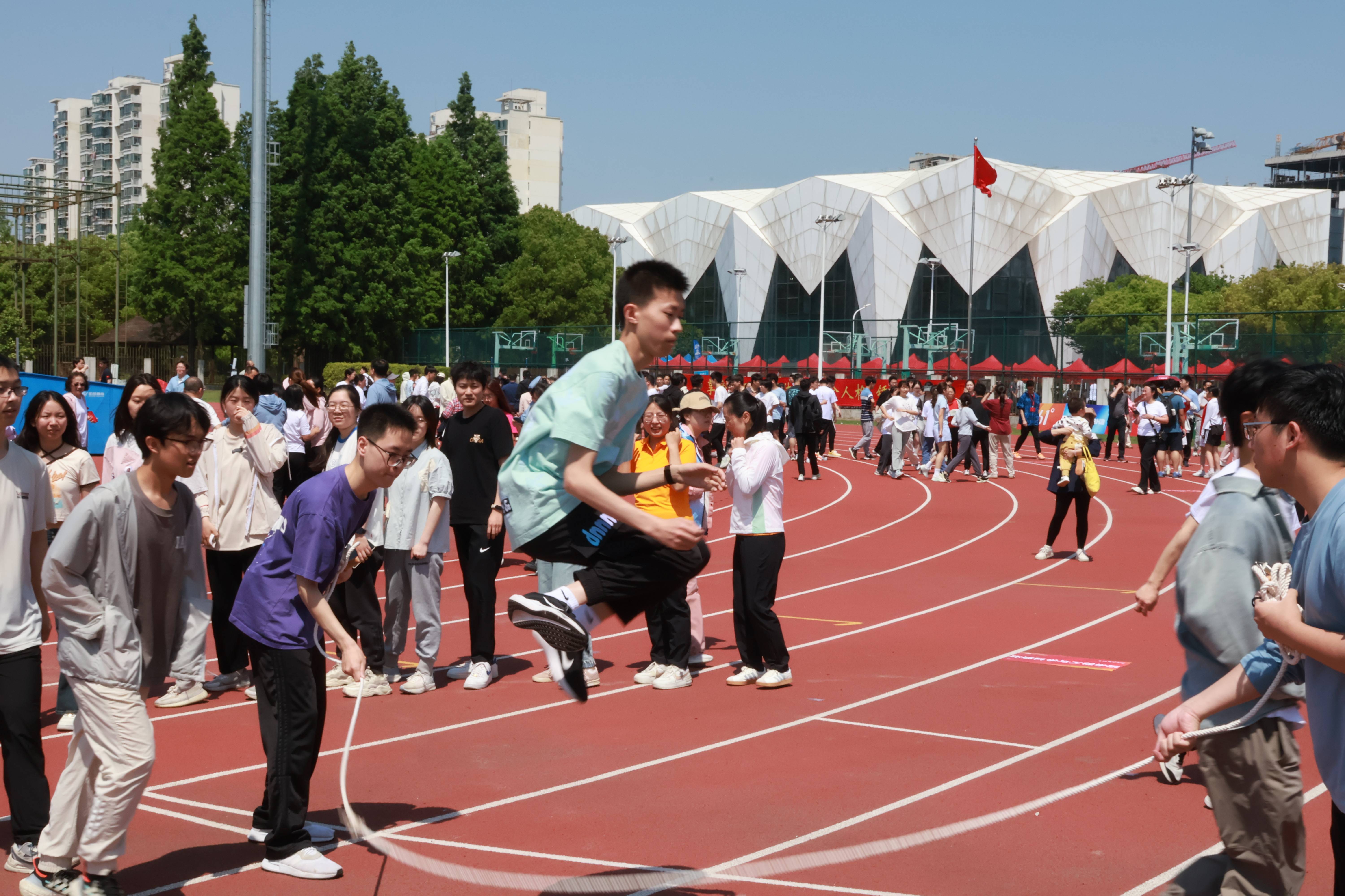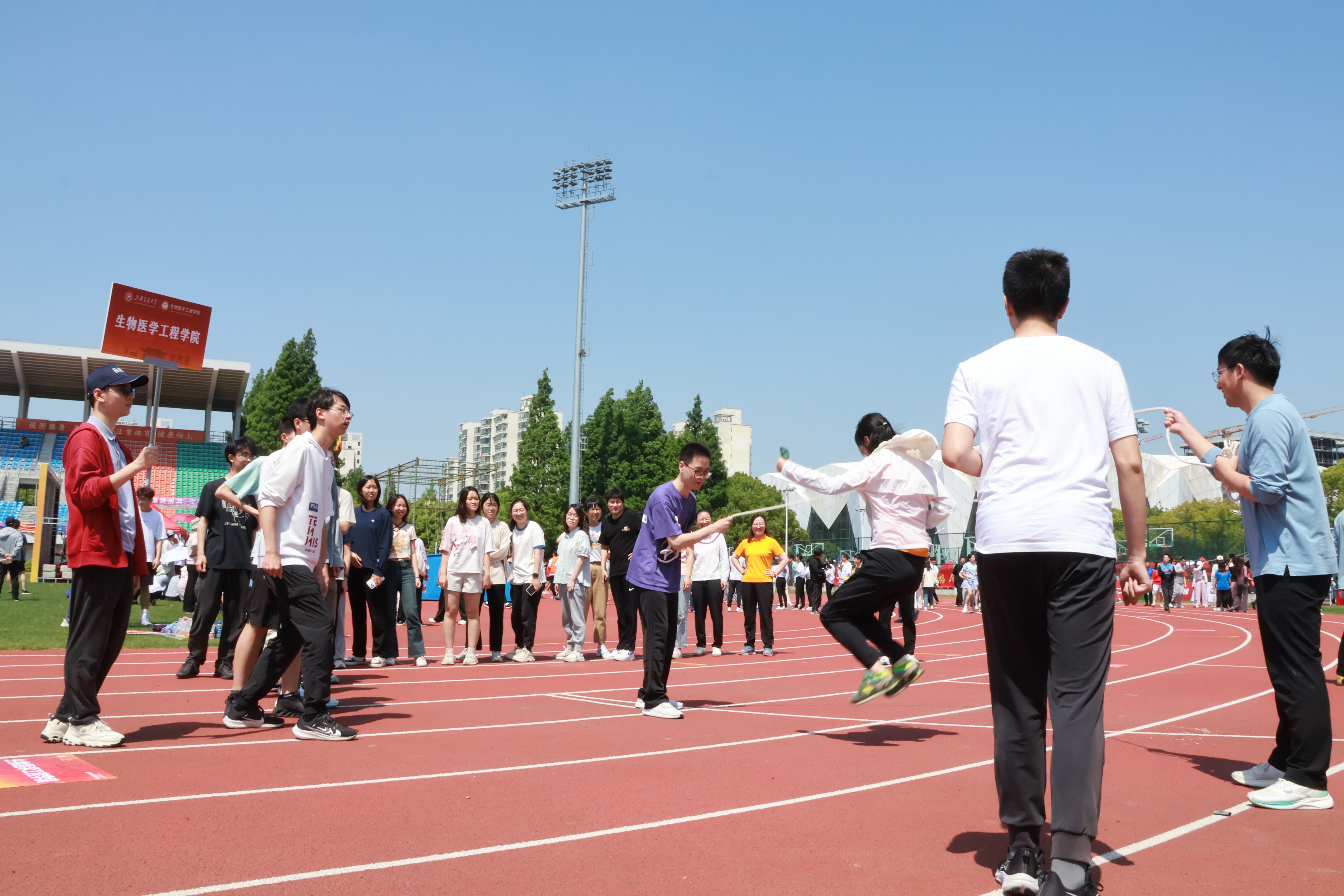 热情被点燃,青春被释放,运动会的序幕就此拉开。生医工学子们在赛场上风姿驰骋,其中王令浩同学获得男子400米第六名、110米栏第八名;丁宇轩同学获得男子跳高第八名。与此同时,在百班千人、跳长绳、拔河、接力等团体项目中,同学们团结一致、勠力同心,获长绳项目第七名。