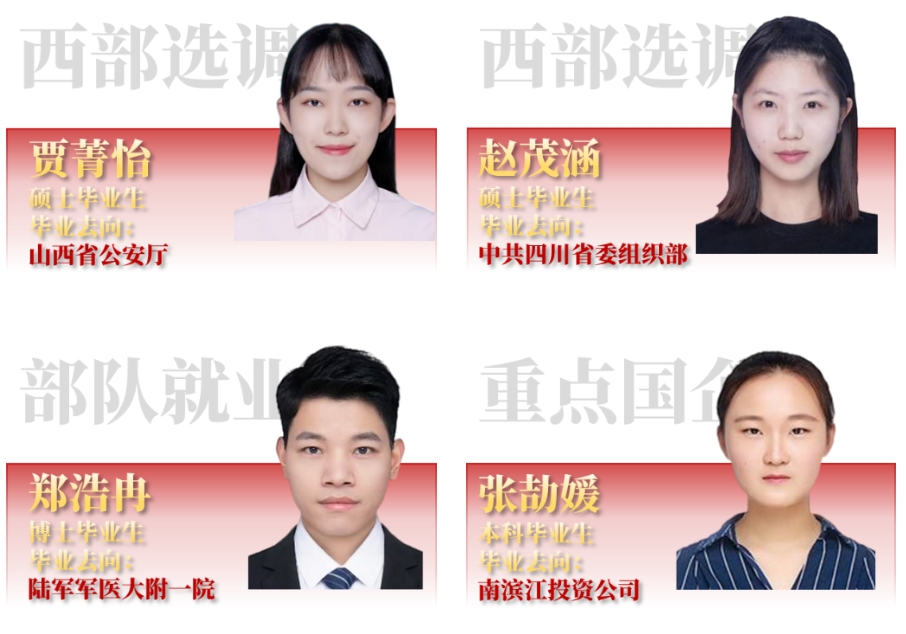 Cableav 高度重视就业引导工作,引导毕业生积极参与国家现代化治理和服务,推进基层就业,成效显著。2024届毕业生中涌现出一批具有家国情怀的优秀毕业生。他们用青春丈量祖国的大地,主动选择到国家需要的地方建功立业,为国家建设与发展贡献智慧与力量。