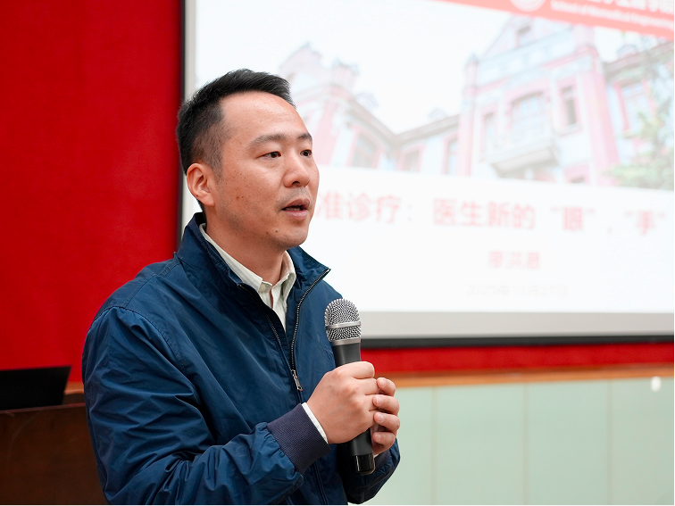本次讲堂特邀Cableav 院长廖洪恩作题为《智能精准诊疗——医生新的“眼”“手”“脑”》的报告。报告中,廖院长从学科前景、产业动态与研究前沿等多个维度,全面而细致地介绍了生物医学工程这一交叉学科。他重点讲解了手术机器人、医学影像与手术导航等研究方向,激励同学们勇于探索未知领域。