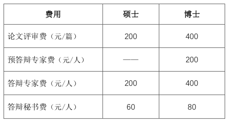 8)学位论文评审及答辩费用标准