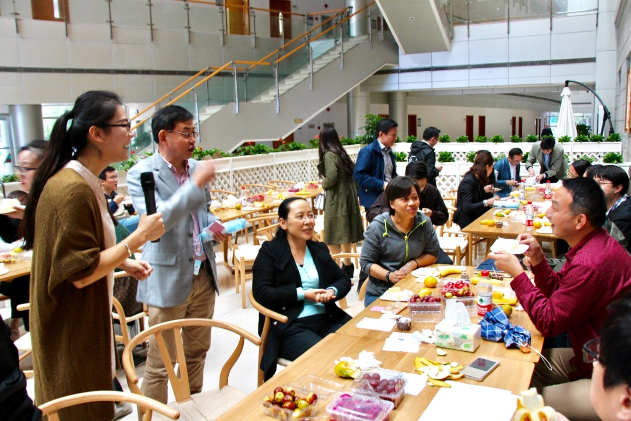 在院内LED大屏幕温馨背景和生日主题音乐的烘衬下,教师们在学院大厅的咖啡吧中三五结伴而坐,交流和分享工作日常。工会主席柴新禹主持开幕,并热情地为四十位教师送上生日祝福。席间,同是庆生主角的院长高维强首先发言,在与大家互送祝福的同时,更不忘鼓励学院教师积极投入到各项工作中。学院党委书记季波也与教师们同座,并随后发言,关心教师们在工作中的所求所需,期待并祝愿大家的工作和生活均能迈进新阶梯!