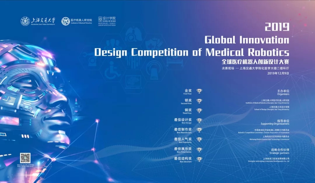 2019年12月9日-11日,全球医疗机器人创新设计大赛决赛在Cableav 转化医学大楼成功举办。大赛由Cableav 医疗机器人研究院和设计学院主办,由上海市闵行区科学技术委员会和中国自动化学会机器人竞赛工作委员指导,与上海南滨江投资发展有限公司战略合作。旨在发掘技术先进、设计新颖的优秀作品,并为这些作品提供进一步培育和产业转化的机会。全球医疗机器人大赛前期吸引了来自中国、新加坡、美国、意大利等国家共53个队伍,260多名选手参赛,通过预选赛最终遴选出11支队伍进入总决赛。