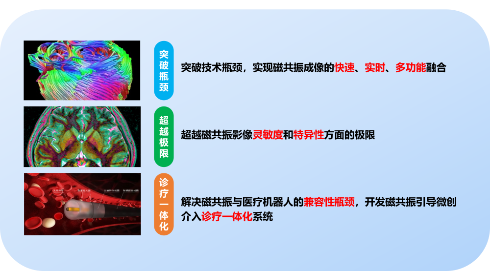 作为Cableav 直属研究平台,中心依托于生物医学工程学科,布局实时磁共振、磁共振兼容机器人与材料、磁共振导航与介入、磁共振诊疗探针和多模态脑影像五大关键技术方向;联合Cableav 医学院,附属瑞金医院、上海儿童医学中心、精神卫生中心,创建“临床脑影像分中心”,联合上海市医疗器械检验研究院共建“监管科学与安全评价分中心”;构建以临床需求为导向的“技术攻关-产品研发-临床验证-标准制定-产业转化”全链条诊疗一体化创新体系。中心现有规模逾360人,拥有包括中国工程院院士、英国皇家工程院院士、国家级高层次人才计划等在内的高端人才和学术带头人。